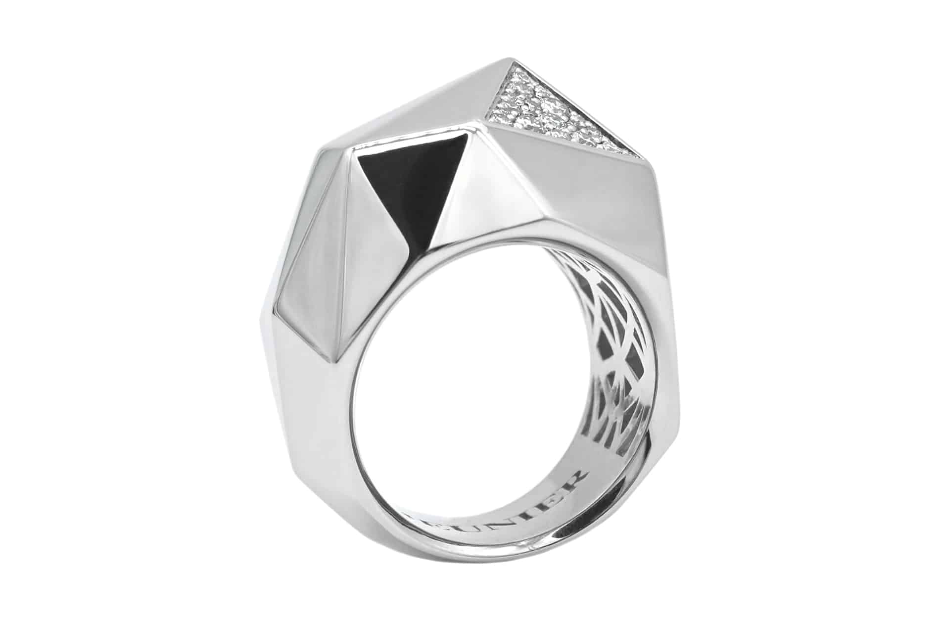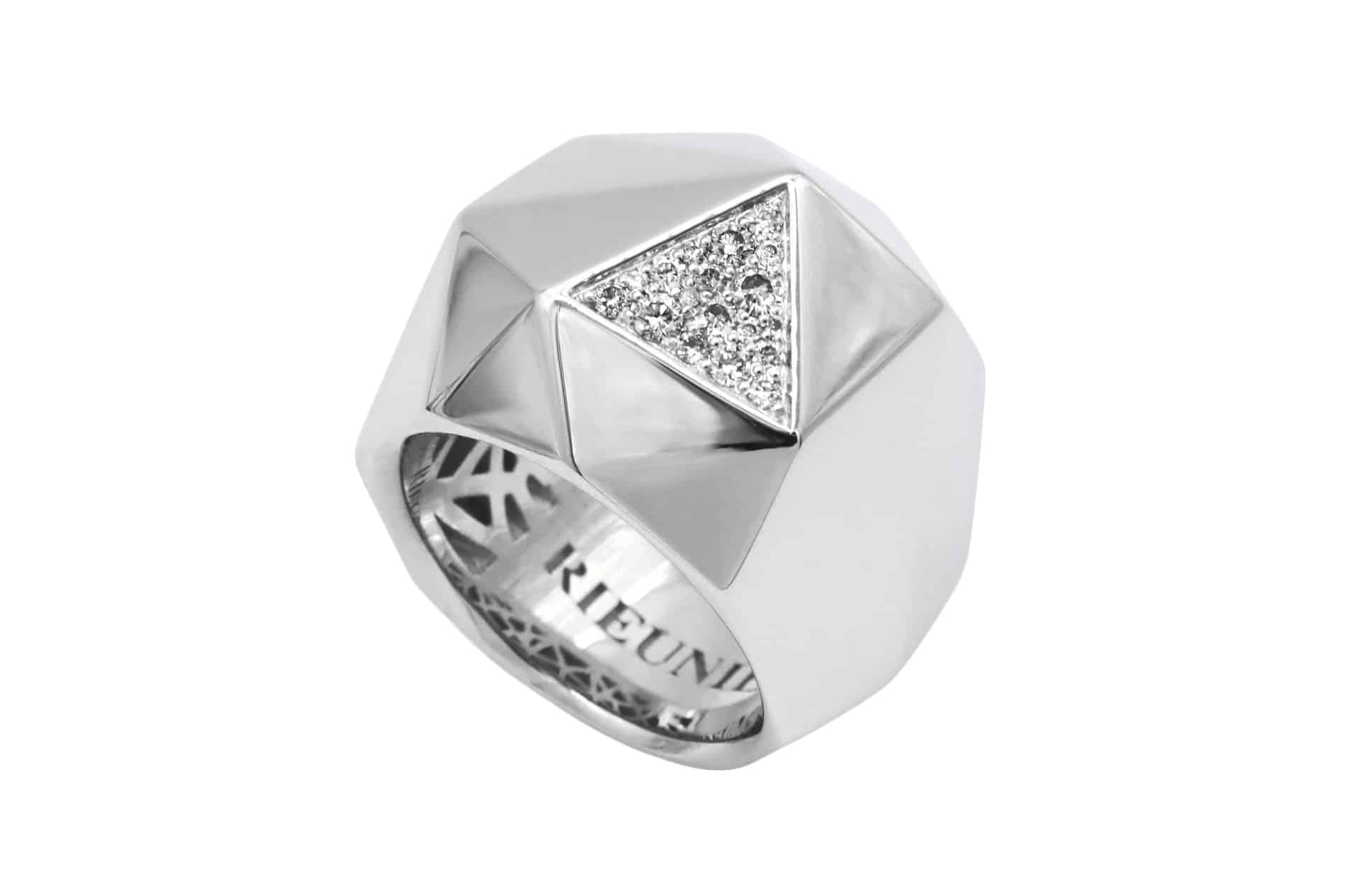 Notre coup de coeur : Un volume audacieux et un design résolument contemporain pour cette bague inspirée du rocher de la Costa Brava.