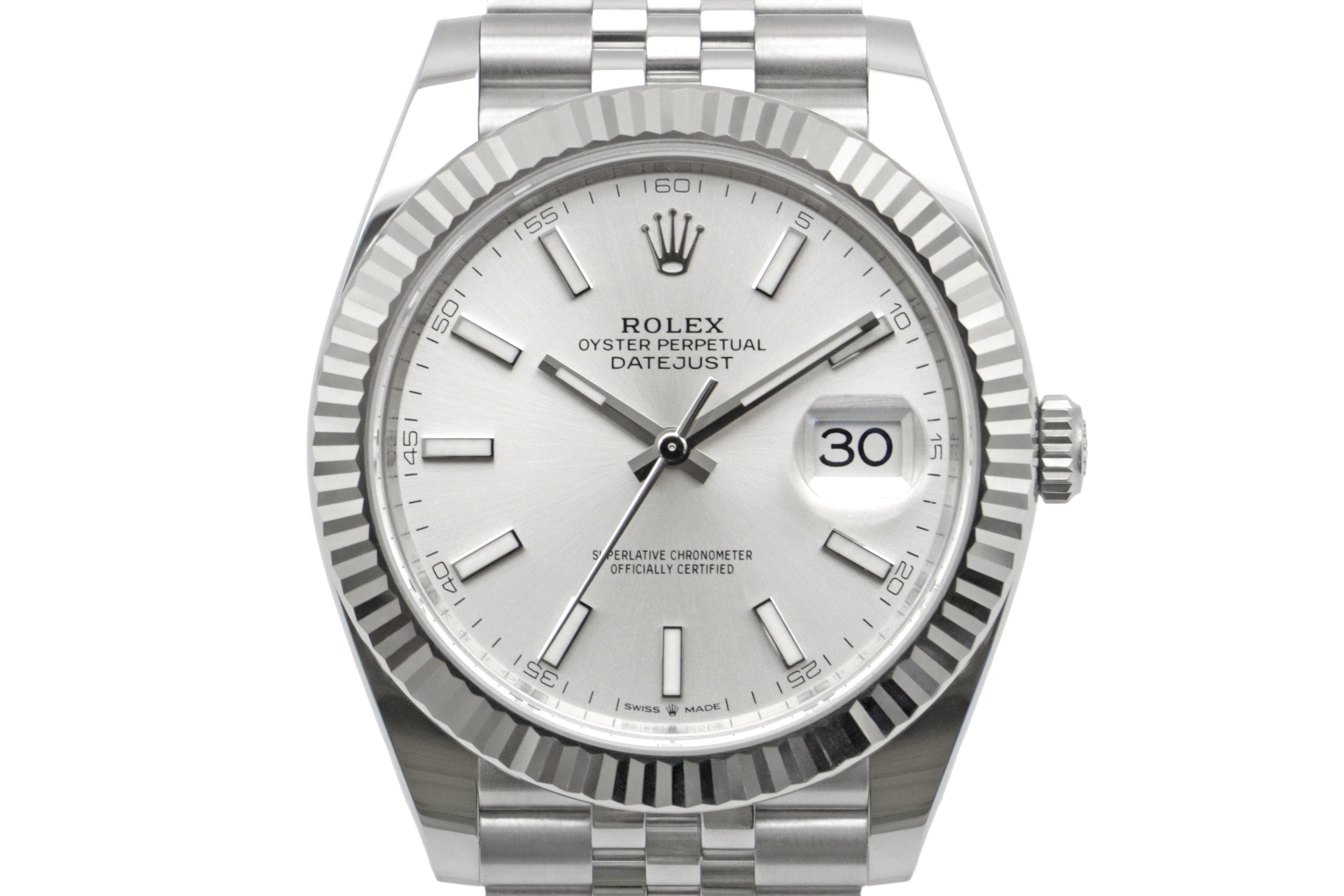 Description : Superbe montre Rolex Datejust 41 de 2025, référence 126334. Boîtier en acier de 41mm, cadran silver, lunette cannelée en or gris, bracelet jubilee en acier. Mouvement automatique, calibre 3235.
