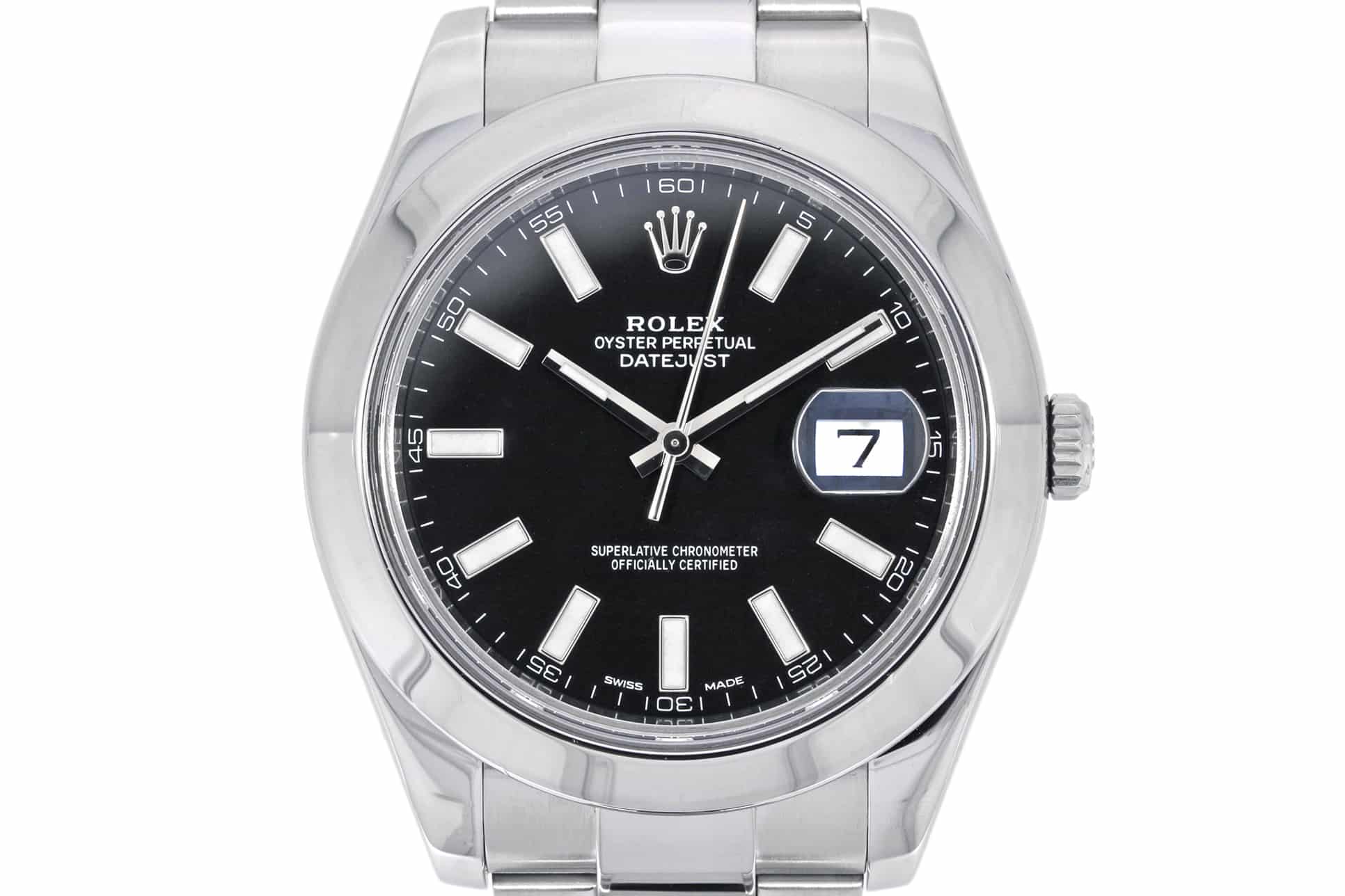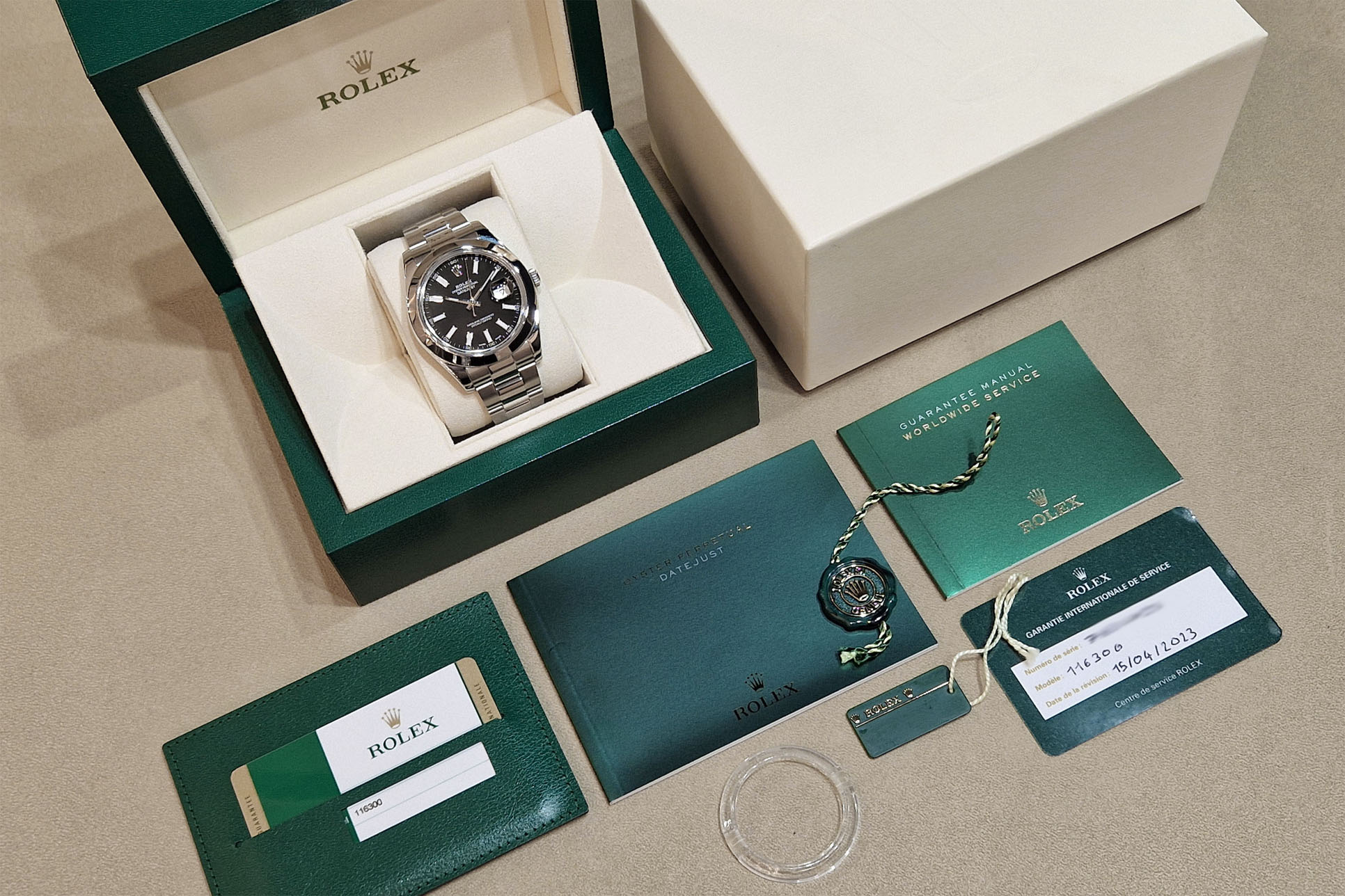 Description : Superbe montre Rolex Datejust 41 de 2016, référence 116300. Boîtier en acier de 41mm, cadran noir, bracelet oyster en acier. Mouvement automatique, calibre 3135.