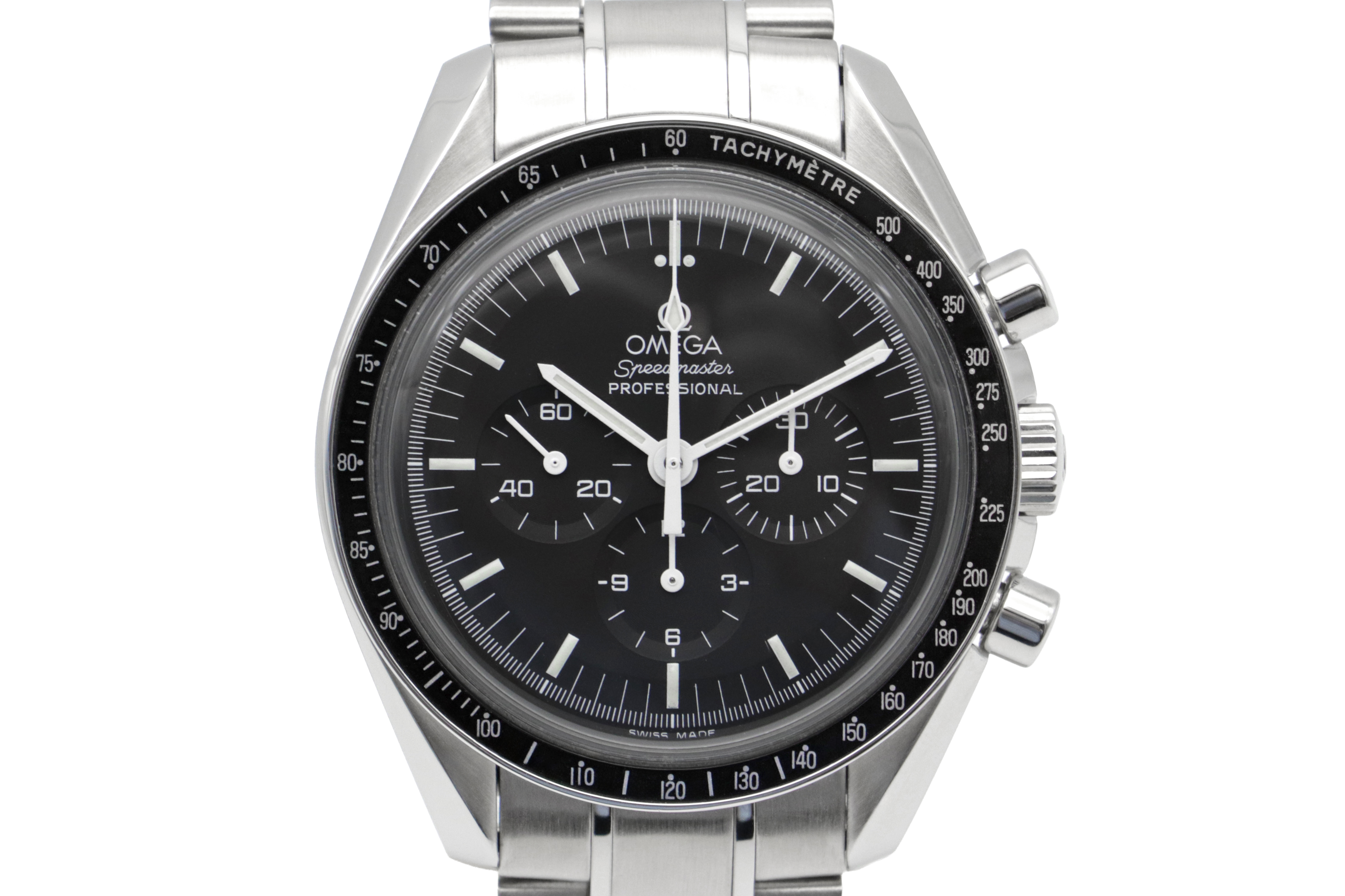 Description : Montre OMEGA Speedmaster Professional, référence 3570.50.00. Boitier en acier, de 42 mm. Cadran noir. Bracelet acier. Mouvement mécanique à remontage manuel.