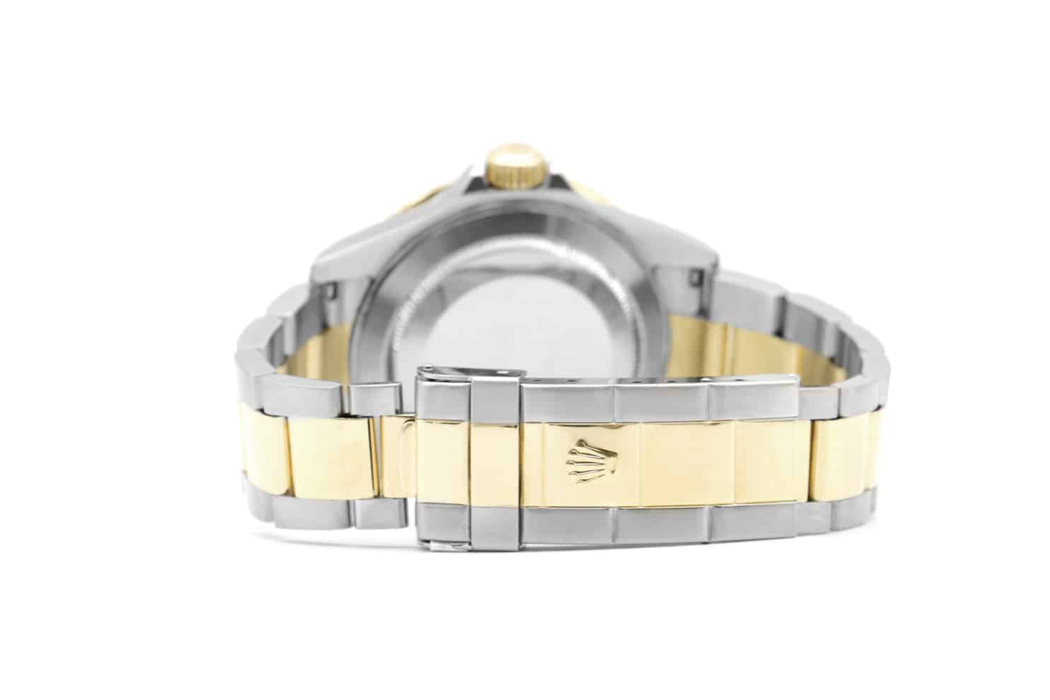 Boîtier en or jaune et acier de 40mm, cadran bleu, lunette rotative unidirectionnelle bleue. Bracelet Oyster en or jaune et acier.