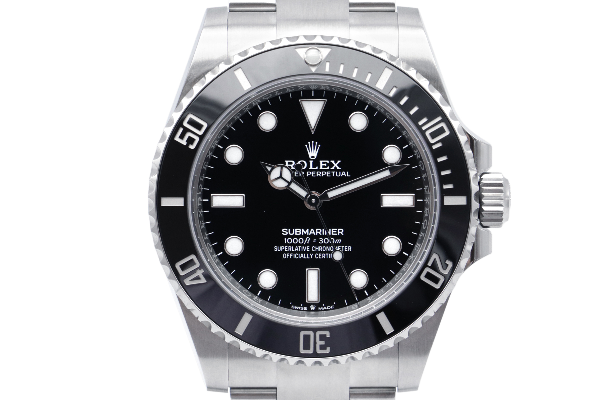 Description : Superbe montre Rolex Submariner No-Date de 2021, référence 124060. Boîtier en acier de 41mm, cadran noir, lunette rotative unidirectionnelle noire, bracelet oyster en acier.