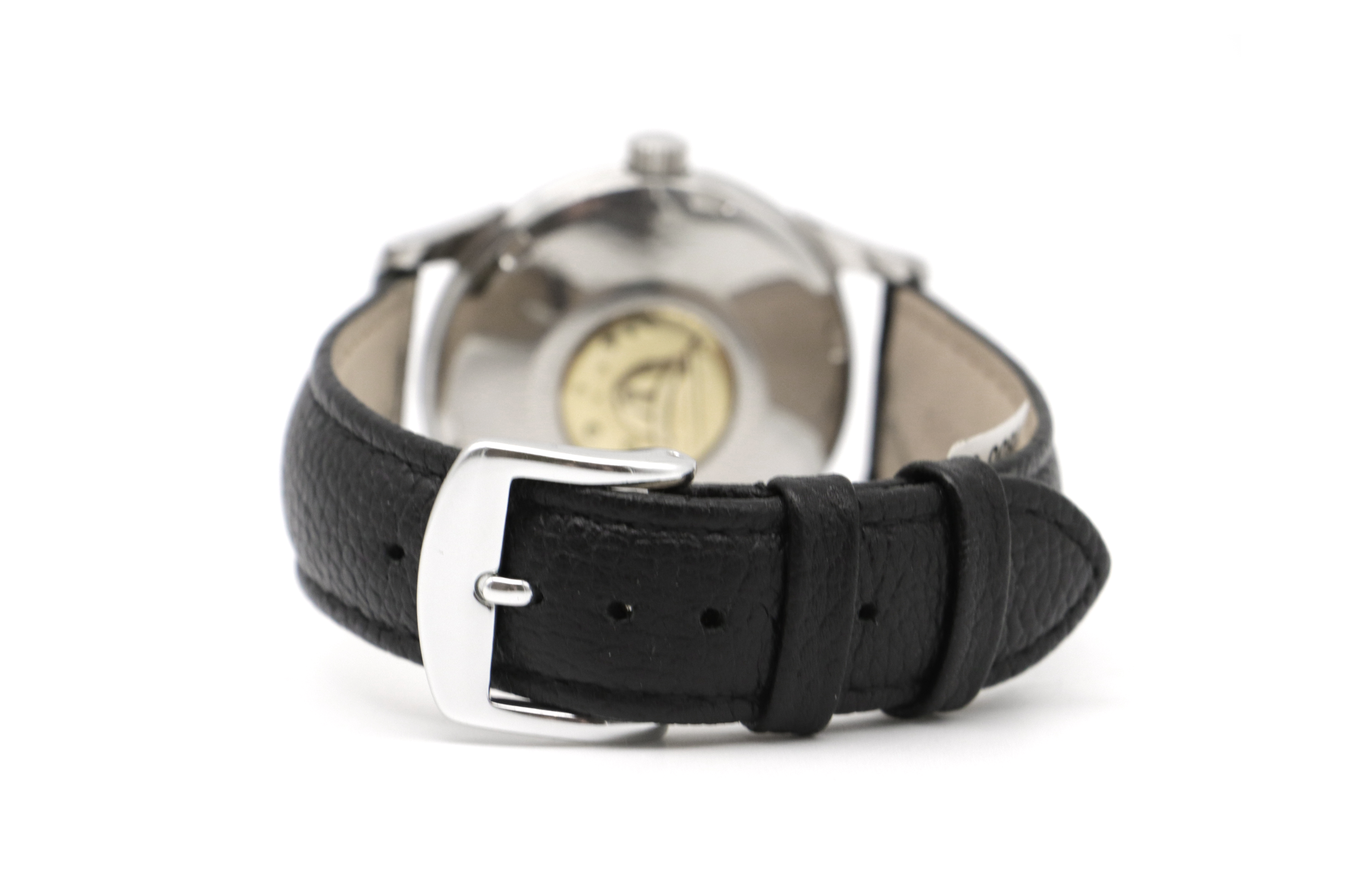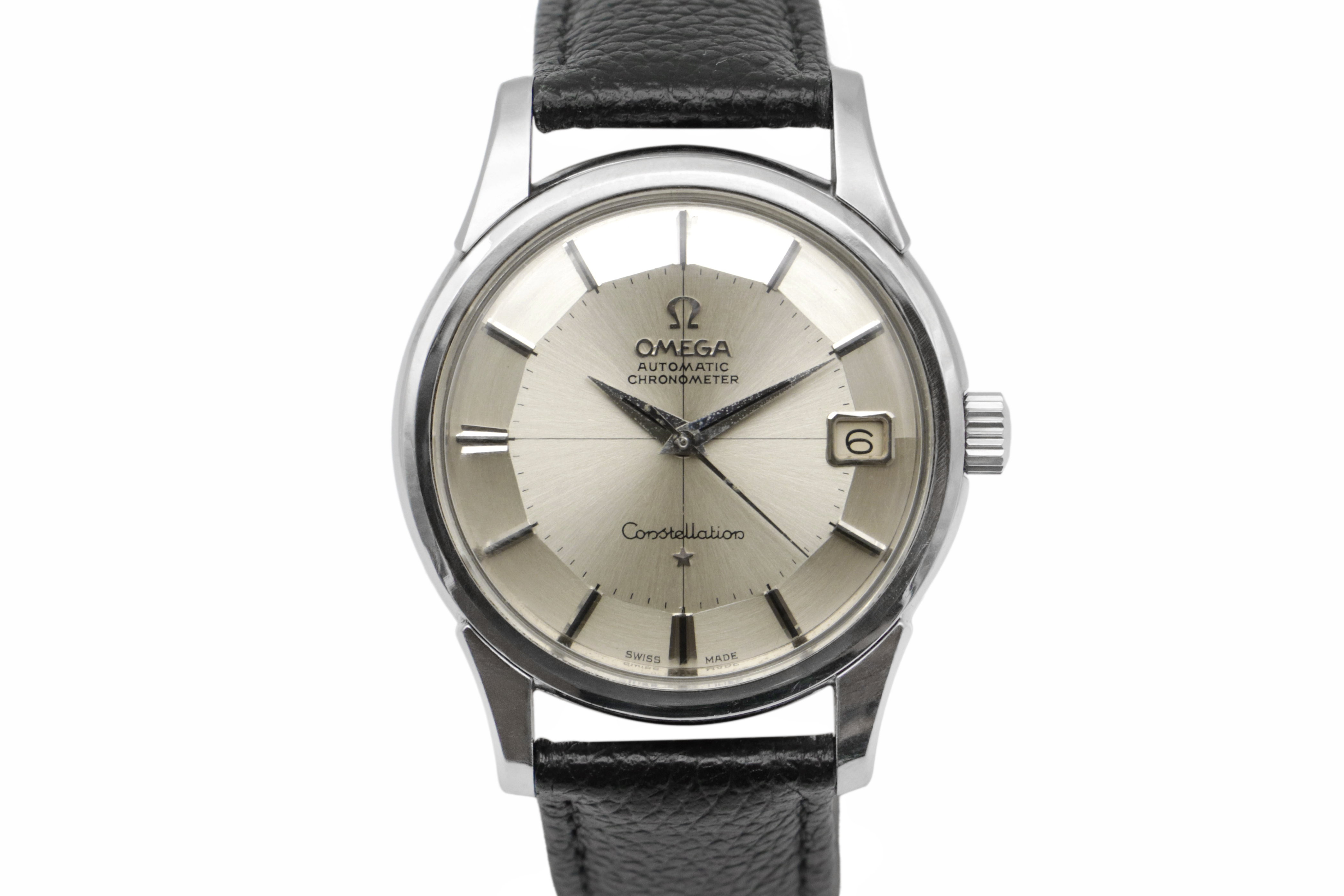 Description : Montre OMEGA Constellation « Pie Pan ». Boitier acier, cadran argenté. Bracelet cuir. Mouvement automatique, cal.561.
