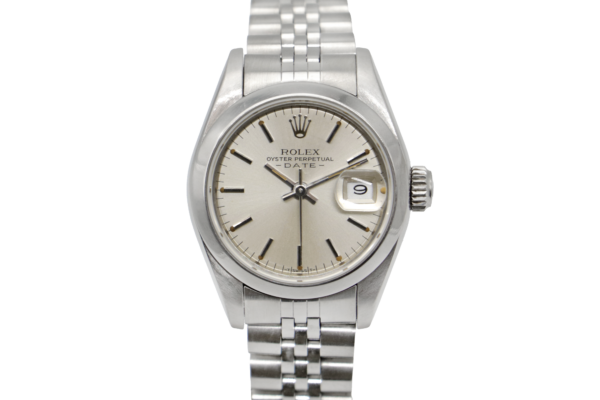 Description : Montre Rolex Lady Oyster Perpetual Date référence 69190. Boitier 26mm en acier, cadran silver, index bâtons. Bracelet Jubilee en acier. Mouvement automatique, cal.2135