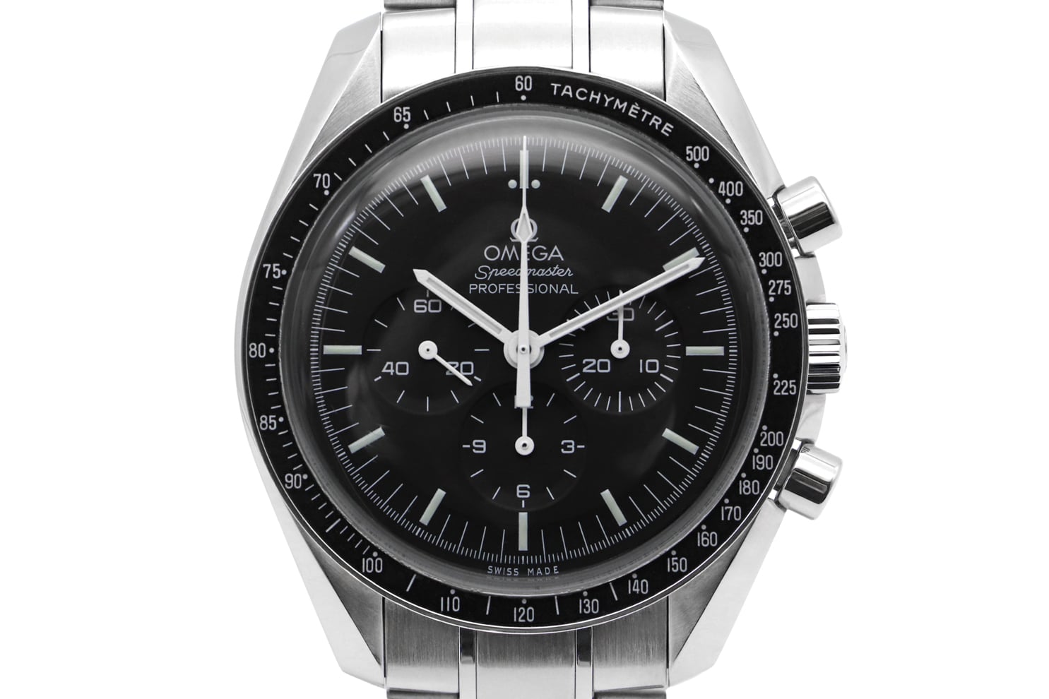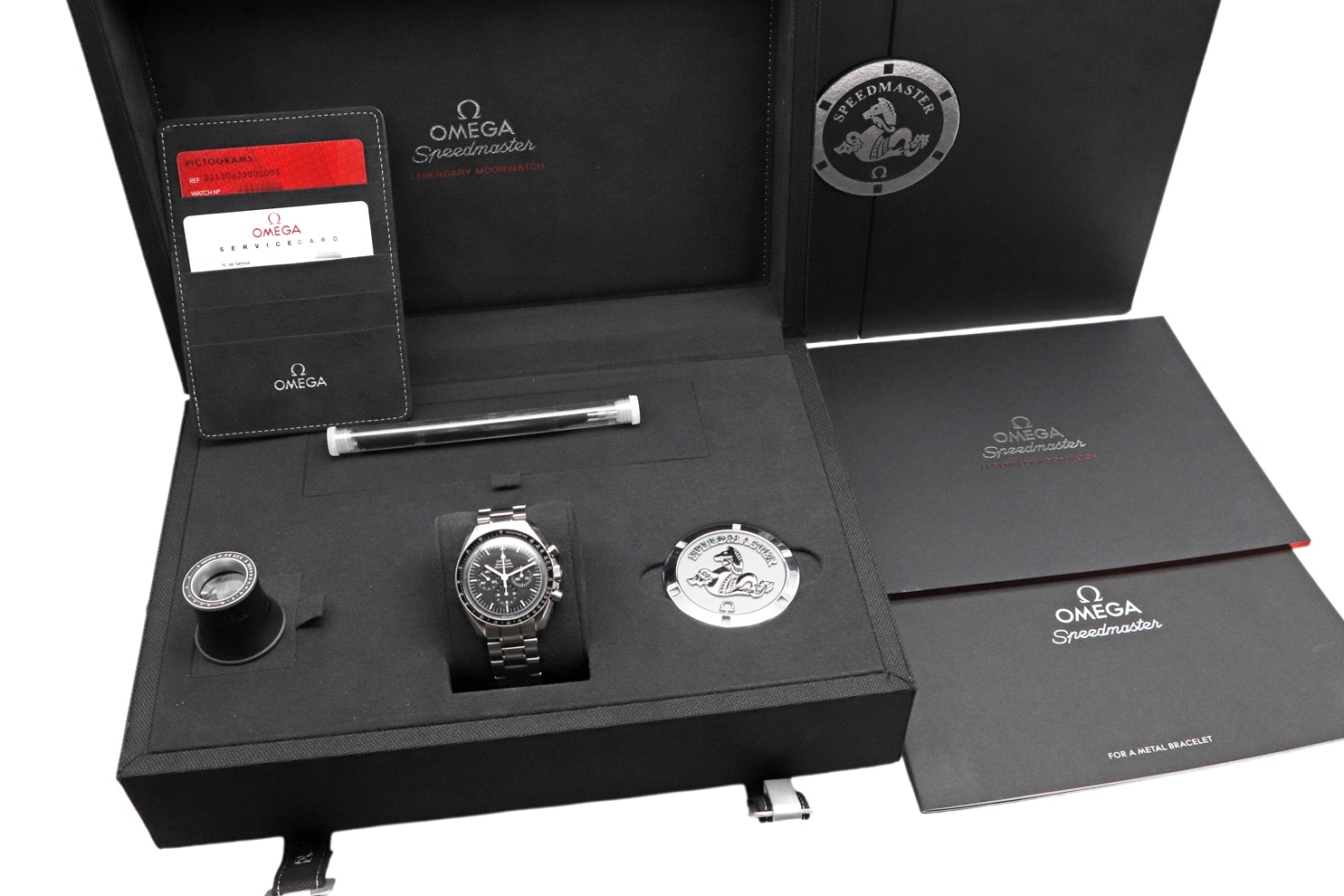Description : Montre OMEGA Speedmaster Professional Moonwatch référence 311.30.42.30.01.005 de 2016. Boitier acier de 42mm, fond noir, bracelet en acier. Mouvement mécanique à remontage manuel cal.1861