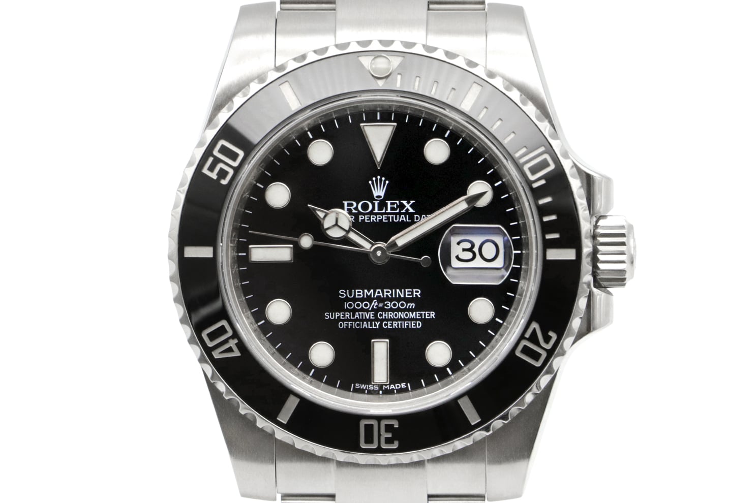 Description : Superbe montre Rolex Submariner Date de 2012, référence 116610LN. Boîtier en acier de 40mm, cadran noir, lunette rotative unidirectionnelle noire, bracelet oyster en acier.